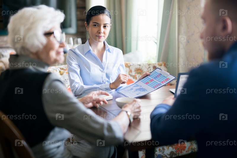 Люди обсуждают финансовый отчет