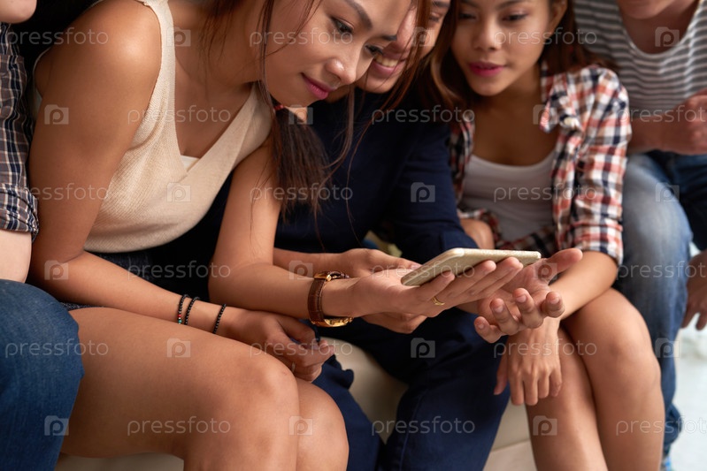 Веселые молодые люди со смартфоном