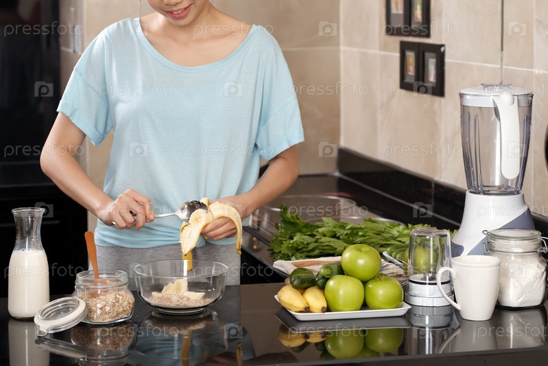 Женщина с урожаем готовит завтрак