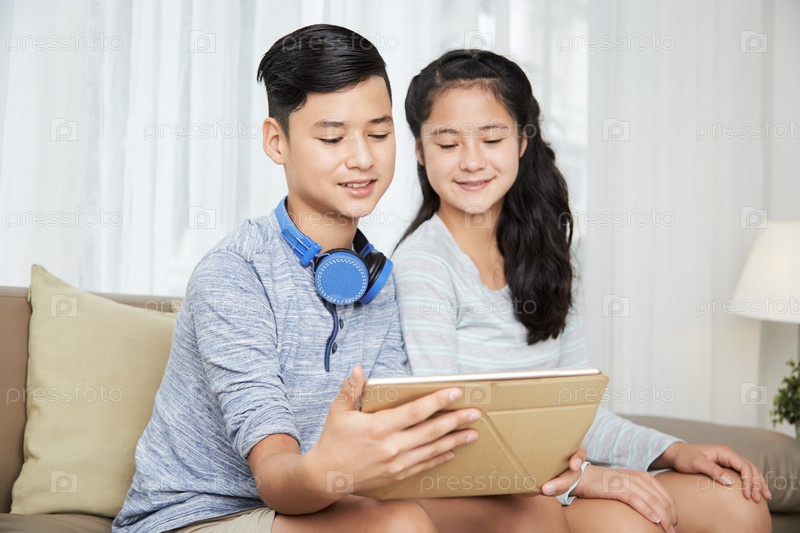Близнецы с планшетным компьютером