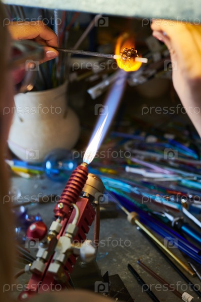 Художница, формирующая стеклянные бусины в газовом пламени