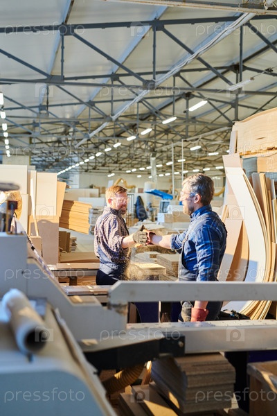 Сотрудники приветствуют друг друга в сборочном магазине