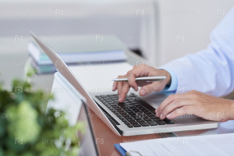 Доктор использует ноутбук