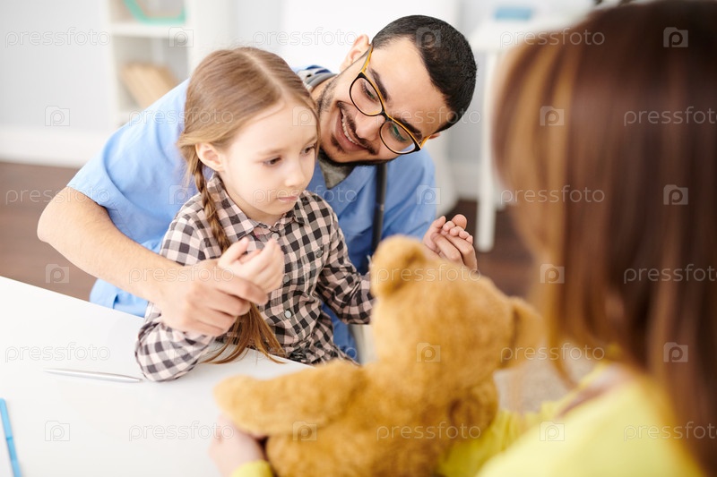 Игровой педиатр, работающий с маленькой девочкой