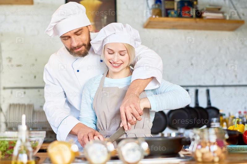 Командная работа профессионального шеф-повара и молодого помощника