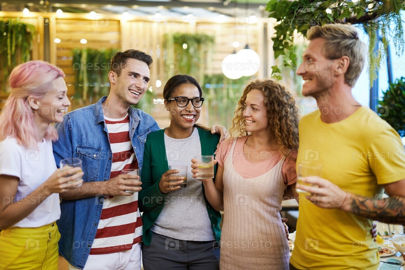 Молодые друзья приносят тосты