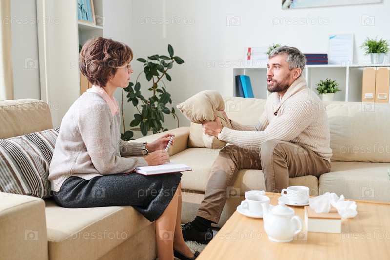 Мужчина, полный ненависти на сессии терапии