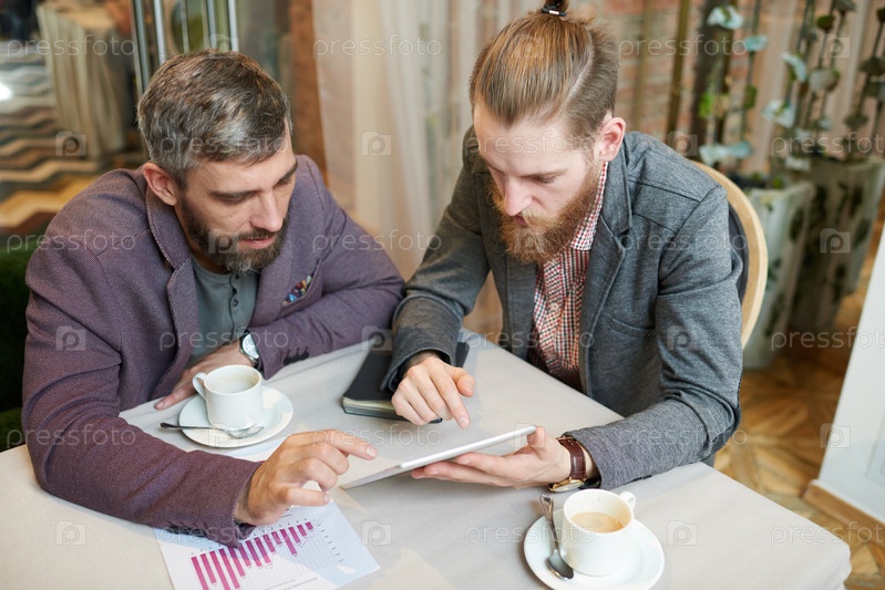 Два современных бизнесмена работают в кафе