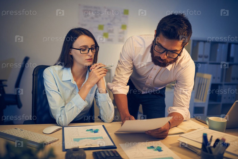 Коллеги по работе обсуждают документы