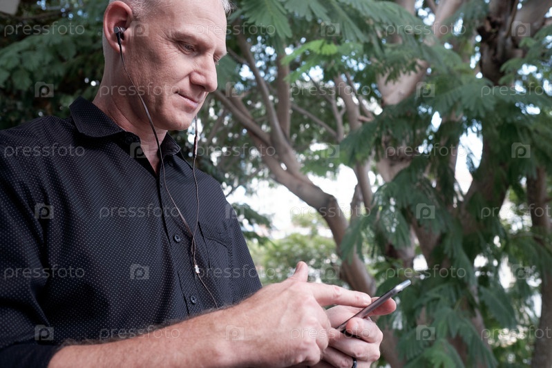 Человек, использующий смартфон в парке