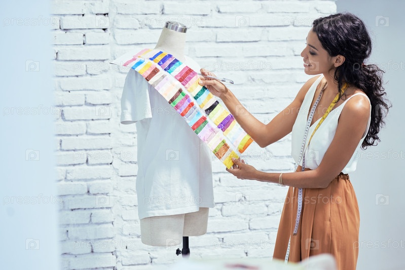 Изготовитель одежды выбирает цвет для платья