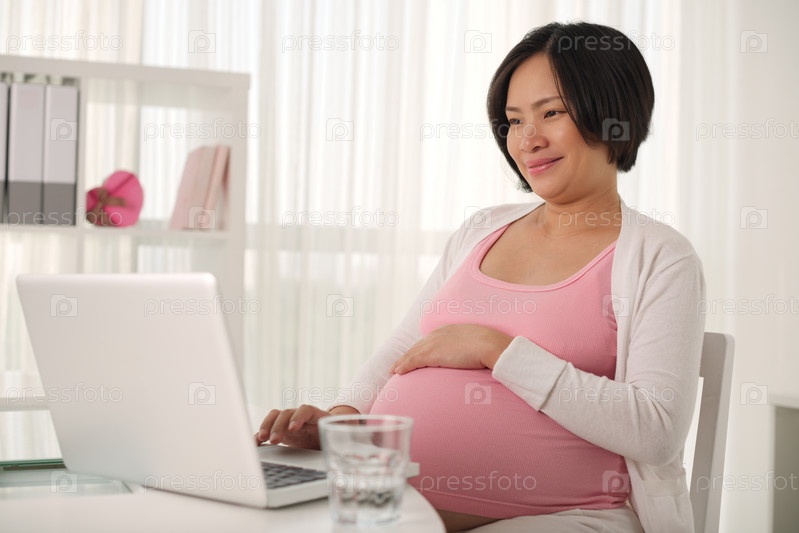Беременная женщина работает из дома