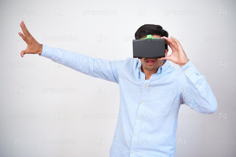 Человек играет в видеоигру виртуальной реальности