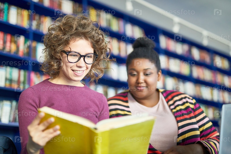 Позитивные студенты учатся вместе читать книги