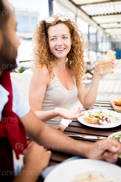Женщина, разговаривающая с другом в кафе