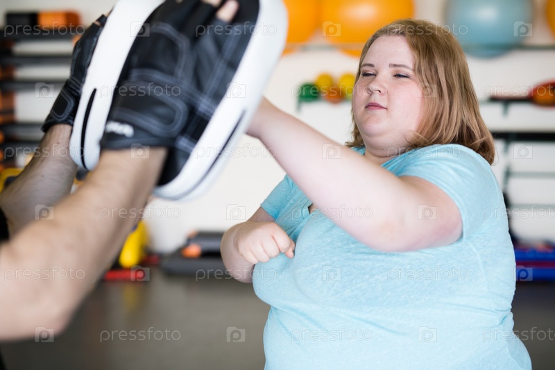 Женщина с ожирением на тренировке по боксу