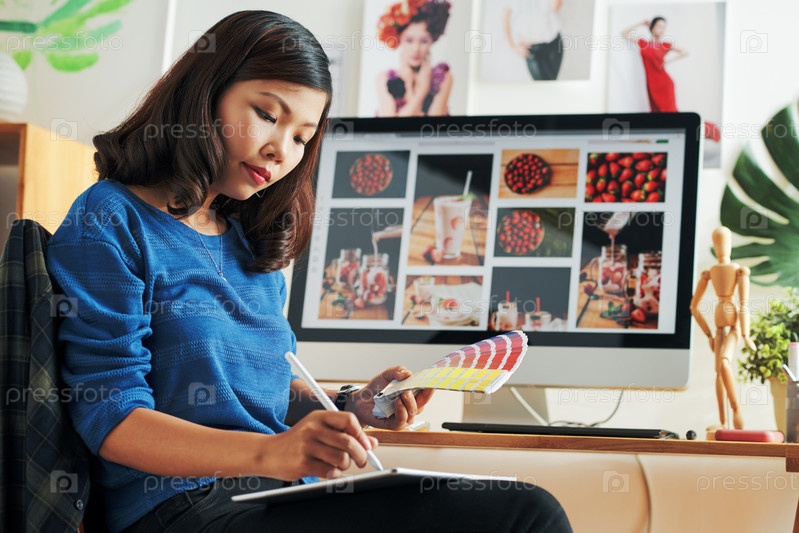 Дизайнер, работающий с цветовой палитрой
