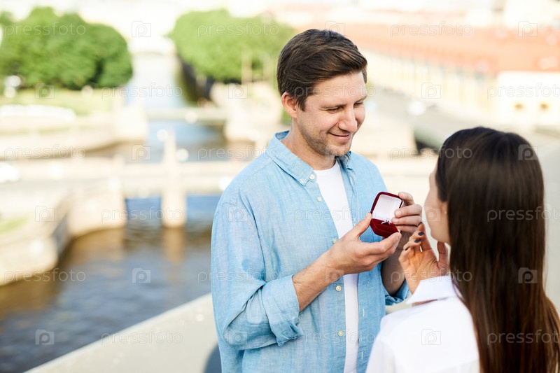 Улыбающийся мужчина показывает обручальное кольцо