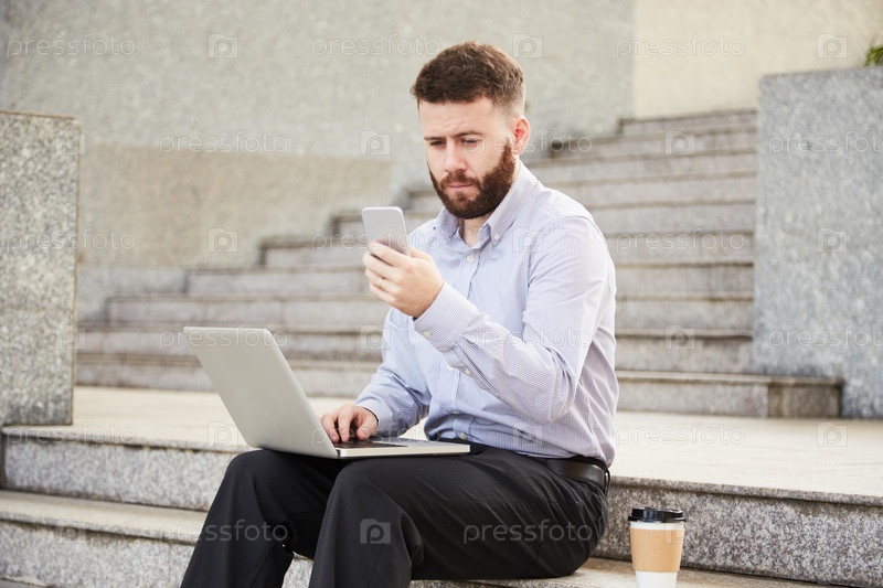 Бизнесмен, отправляющий сообщения коллеге