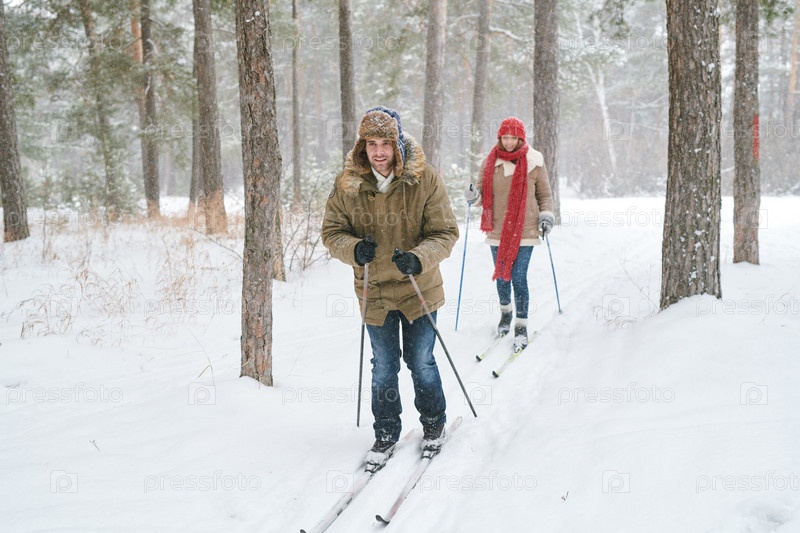 Пара на лыжном трассе