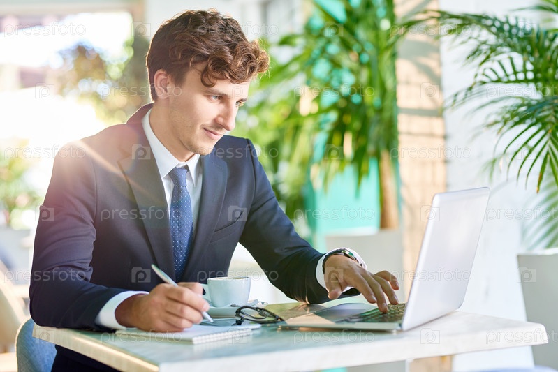 Красивый бизнесмен, работающий за столом
