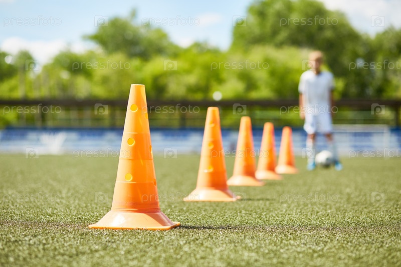 Ряд конусов в футбольной практике