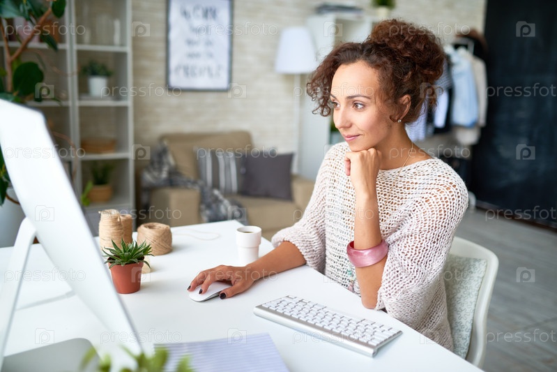 Молодая женщина работает с компьютером