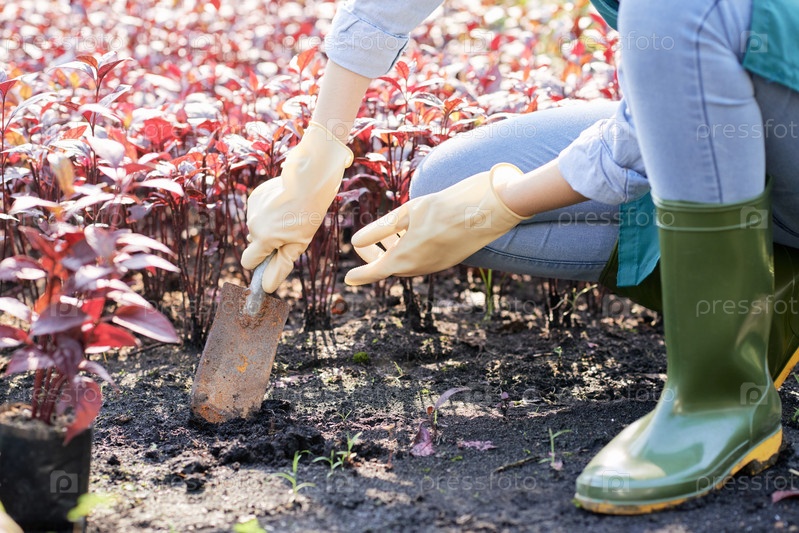 Женщина сажает в саду