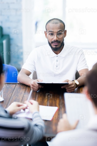 Молодой человек на собеседовании по работе