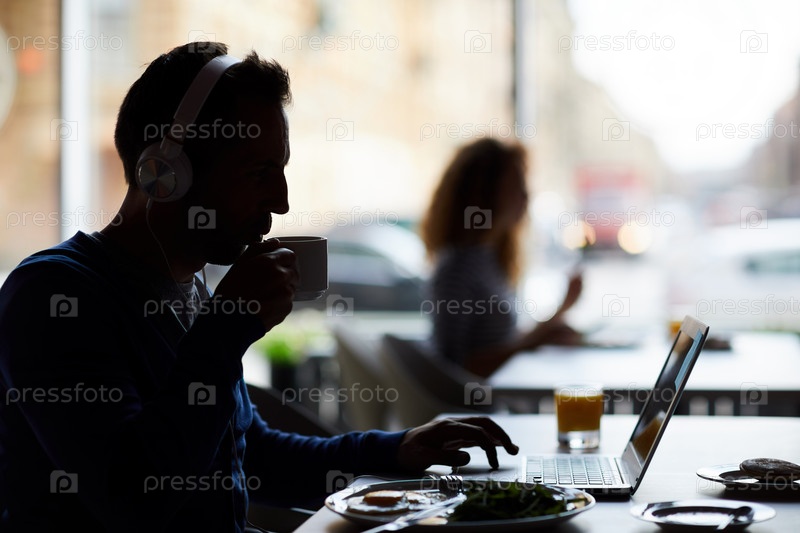 Хипстер предприниматель, работающий в кафе
