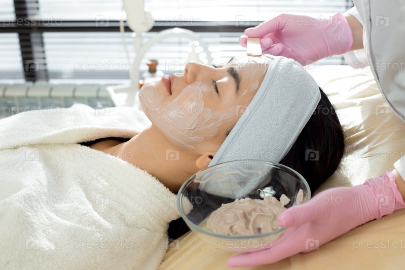 Косметолог, применяющий маску для лица Side View