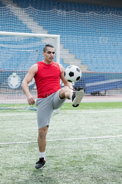 Красивый молодой человек играет в футбол