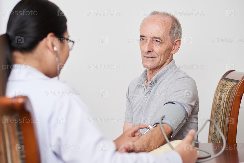 Пожилой пациент с врачом дома