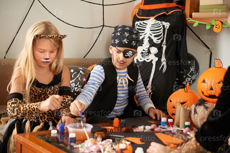 Дети рисуют на вечеринке Хэллоуина