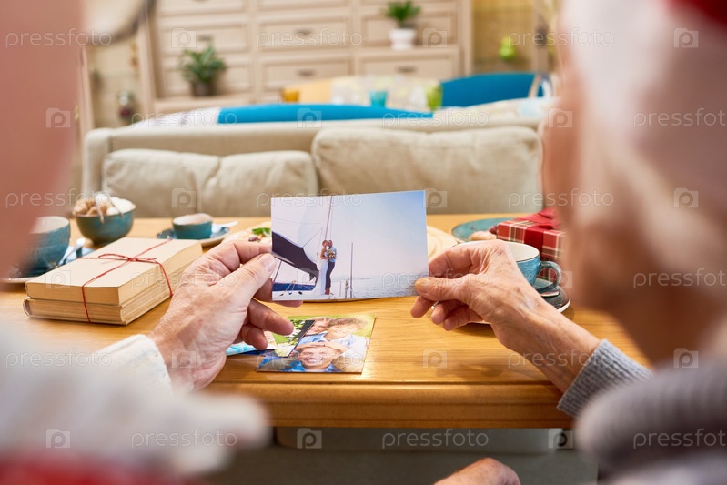 Пожилые люди смотрят на фотографии
