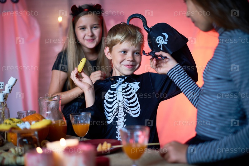 Веселые дети веселятся на вечеринке Хэллоуина