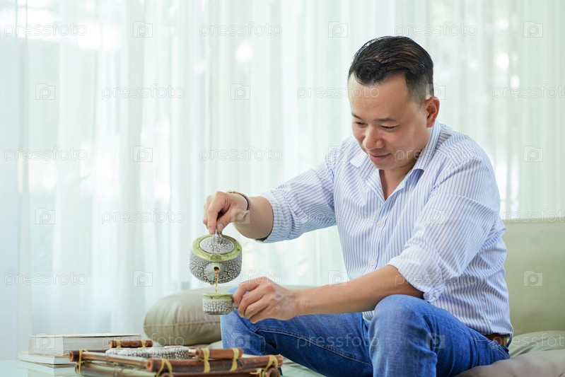 Мужчина пьет чай дома