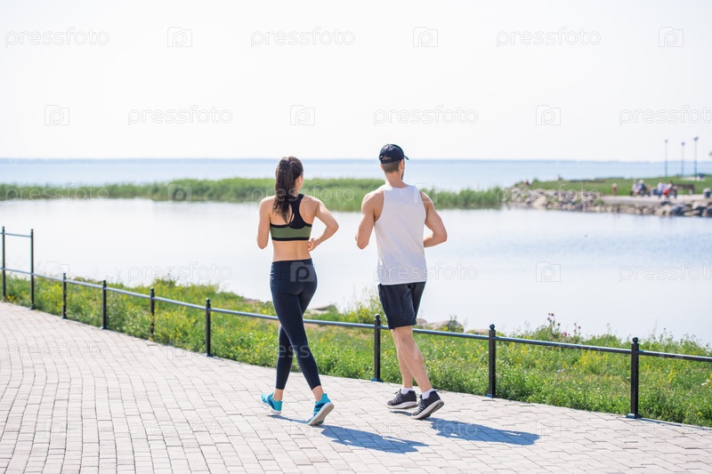 Пара бегает по озеру Young