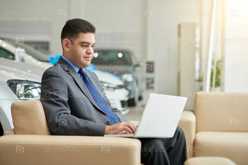 Автодилер работает над ноутбуком