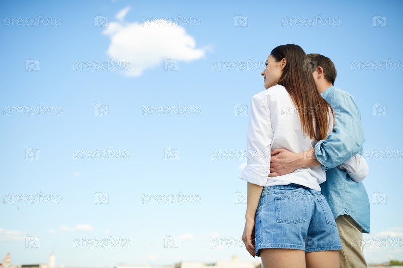 Мечтательная пара смотрит в небо