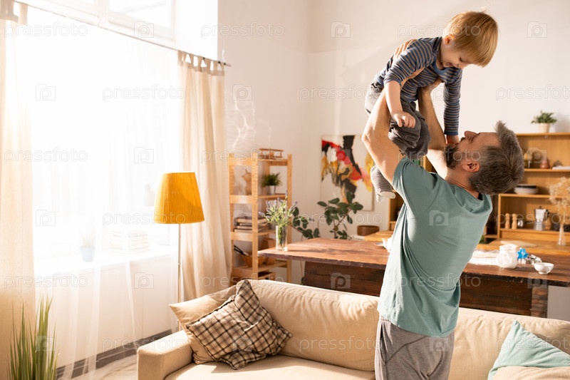 Счастливый отец воспитывает сына в уютном доме