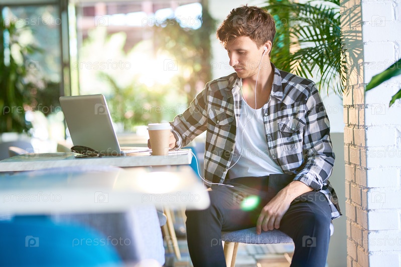 Молодой человек отдыхает в кафе