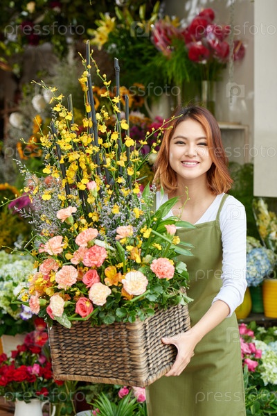 Цветочник с корзиной цветов