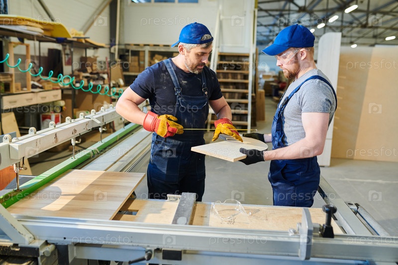 Бородатый инженер измеряет деревянные детали