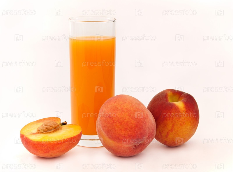 Несколько персиков и стакан персикового сока