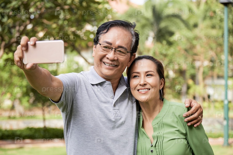 Старшая пара, делающая селфи
