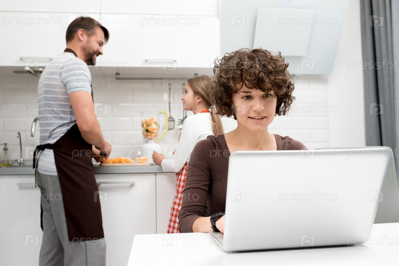 Любящая семья проводит утро на кухне