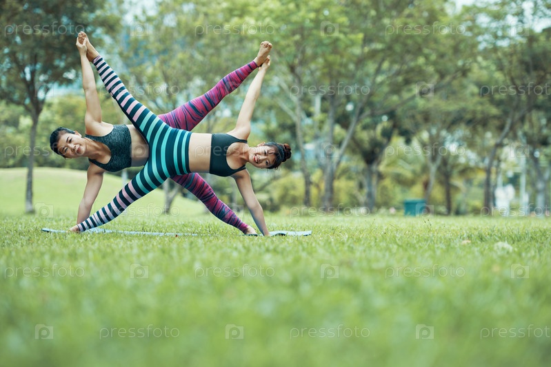 Азиатские акройоги практикуют в парке