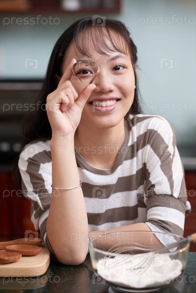 Счастливая женщина с резачкой печенья