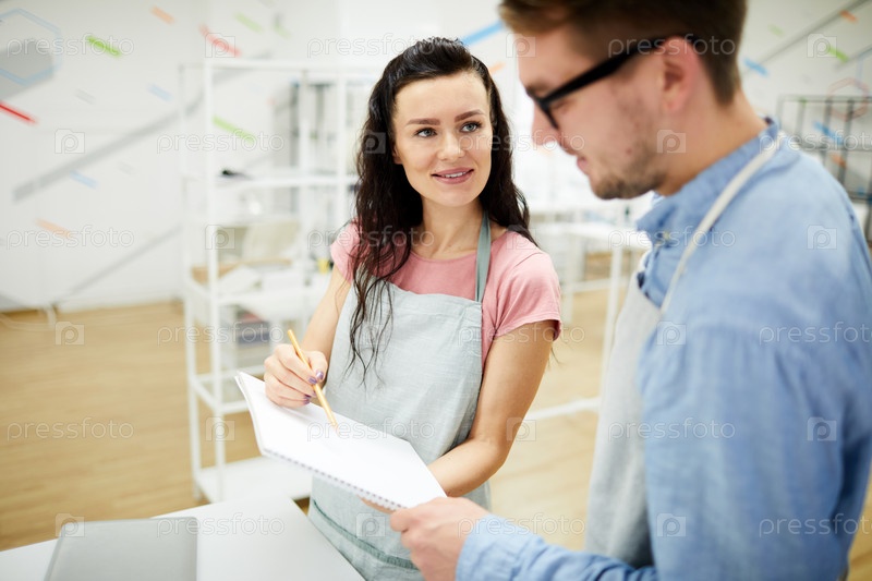 Улыбающаяся женщина рисует модный эскиз для профессионального портного